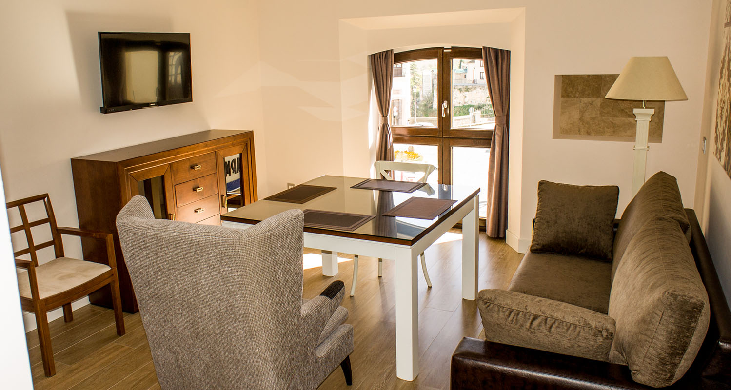 Los apartamentos de un dormitorio con capacidad máxima para tres personas, disponen de terraza privada algunos con vistas a Plaza de España junto al Tajo y otros con vistas panorámicas a las montañas, desde donde se pueden contemplar atardeceres espectaculares .